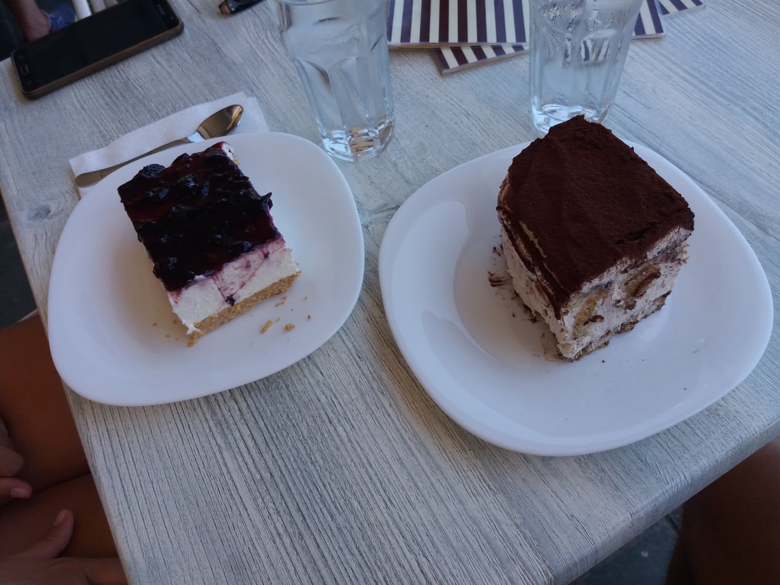 Φτάσαμε στη Χώρα Σφακίων, κομμάτι της νοτιο-ανατολικής περιοχής του νομού Χανίων που ονομάζεται Σφακιά, περίπου 75 χλμ από τα Χανιά. Όλα τα εστιατόρια δίπλα στο γραφικό λιμανάκι, που εννοείται ότι έχει και αυτό τη δική του ιστορία, σε ελκύουν με τη πρώτη ματιά και όποιο και αν επιλέξεις θα ικανοποιήσεις άπλετα τον ουρανίσκο σου. Οι γεύσεις του τόπου, το σημείο δίπλα στη θάλασσα και οι άνθρωποι που θα σε εξυπηρετήσουν με όλη τους τη καρδιά, καθησυχάζουν τη σκέψη σου και για λίγο νιώθεις ανάλαφρος, σαν να βρήκες λύση σε όλα σου τα προβλήματα. Έχοντας επέλθει ο κορεσμός, πίνουμε λίγη τσικουδιά για τη χώνεψη και κάνουμε μια τελευταία βόλτα στο λιμάνι. Δεν θέλαμε και πολύ, περάσαμε έξω από το "Καφέ Δέσποινα" και το μάτι μας έπεσε στα γλυκά. Όλα φαίνονταν υπέροχα και η επιλογή δεν ήταν καθόλου εύκολη. Τελικά, μετά από αρκετή σκέψη και με τη βοήθεια του προσωπικού εκεί, καταλήξαμε σε ένα τιραμισού και ένα τσιζκέικ (βλ. φωτογραφία). Τα γλυκά ήταν χειροποίητα, φρέσκα και νόστιμα. Ήταν ό,τι έπρεπε για να κλείσει αυτή η εκδρομή μας. Η ηρεμία και η ανεμελιά έδωσε τη σειρά της σε μια "γλυκιά ικανοποίηση" και εμείς γυρίσαμε στο σπίτι μας με ένα ανεξίτηλο αίσθημα χαράς και μια αξιομνημόνευτη γευστική εμπειρία.